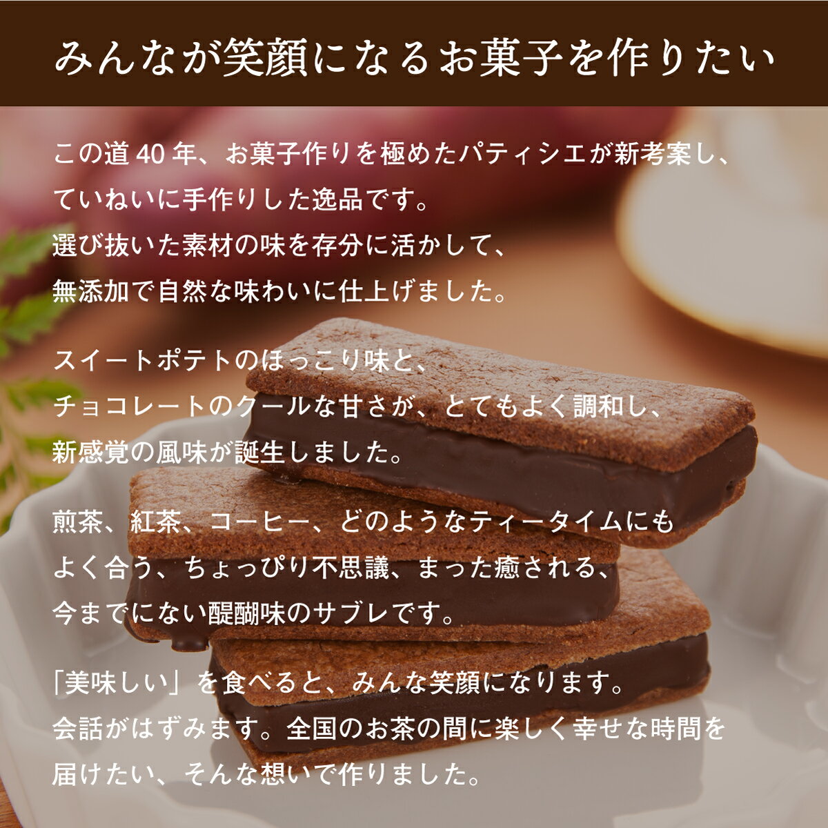 スイートポテトのほっこり味と、チョコレートのクールな甘さが、とてもよく調和し、新感覚の風味が誕生しました。